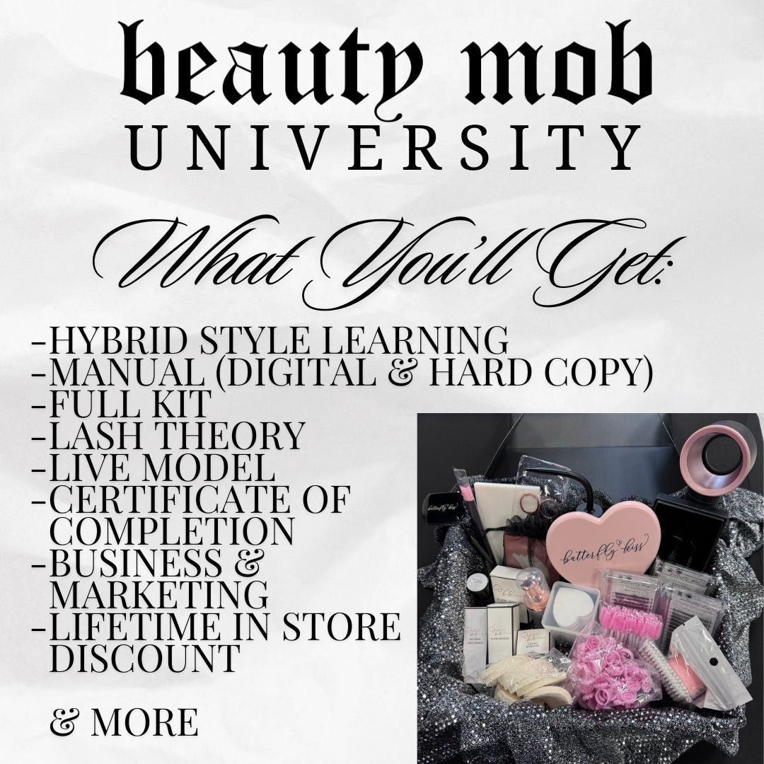 Become an AZ LICENSED LASH ARTIST with our board approved training course. Under the guidance of a board-approved trainer, join BK and Beauty Mob University for an educational and immersive experience that will equip you with the tools and skills necessary to start taking clients immediately. Don't miss out on this opportunity to change your life and enter the world of lash artistry with our IN - PERSON lash training!